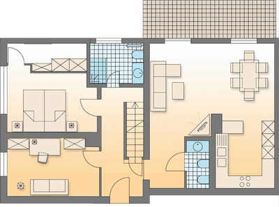 Viel Platz bietet unser 100 m² großes Ferienappartement. Es ist großzügig eingerichtet und hochwertig ausgestattet. Das Appartement verfügt über zwei Schlafzimmer, eine große Küche mit Sitzecke und einen Balkon.