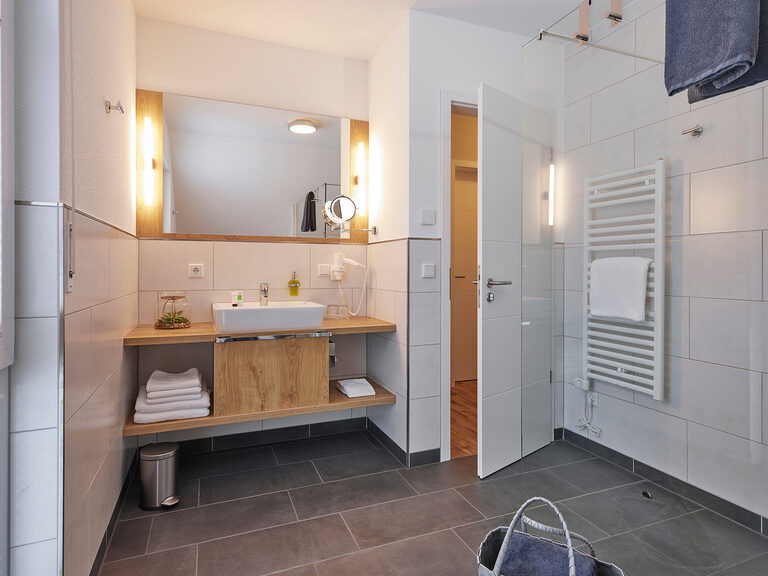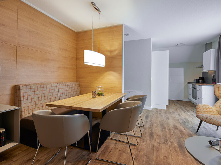 Die Wohnung im Obergeschoss ist mit 70 m² geräumig. Der Balkon gibt den freien Blick in die Landschaft der 1000 Berge frei. Zu jeder Jahreszeit wunderschön.Das Hotelgebäude ist 100 Meter entfernt. Hier nutzen Sie kostenlos das Hallenbad und den Saunagarten.